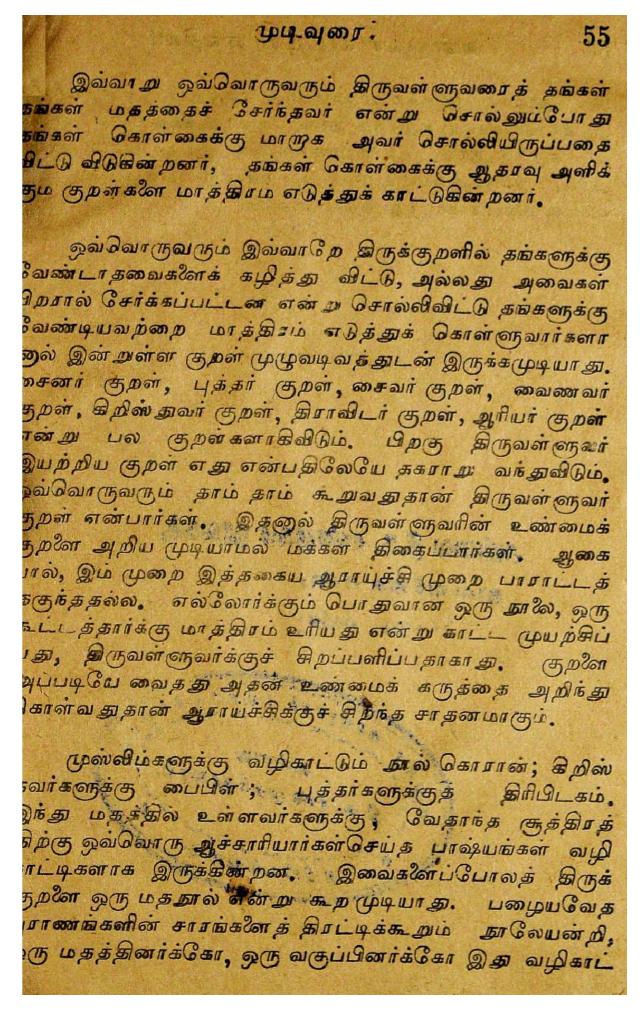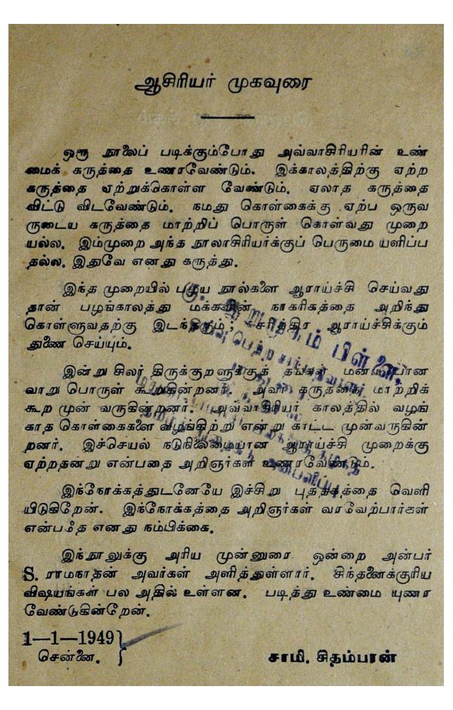 சங்க தமிழ் இலக்கியம் முதல் பிற்கால நூல்களை உள்வாங்கி 27க்கும் அதிகமான நூல்கள் எழுத்யவர், ஆரம்பத்தில் திராவிடர் கழக கும்பலோடும், பின் கம்யூனிசத்தில் சேர்ந்தவர் தமிழ் படிக்க மனிதனாக ஆனவர். தமிழை வாழ்நாள் முழுவதும் இழிவு செய்த ஈ.வெ.ராம்சாமி நாயக்கருடன் நெருங்கி பழகி அவரோடு மலேசியா சென்றும், ஈ.வெ.ரா ஐரோப்பா சென்றபோது இங்கே பத்திரிக்கை ஆசிரியராகவும் இருந்தவர்.